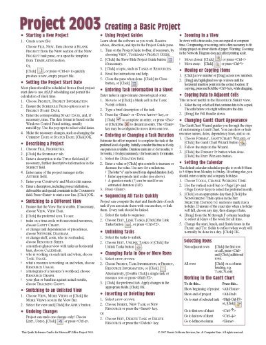 Read Microsoft Project 2003 Creating a Basic Project Quick Reference Guide (Cheat Sheet of Instructions, Tips & Shortcuts - Laminated Card) by Beezix Inc. (2004-01-03) by ... with .... Microsoft Project 2003 Creating a Basic Project Quick Reference Guide (Cheat Sheet of Instructions, Tips & Shortcuts - Laminated Card) by Beezix Inc. (2004-01-03) named as one of Whoopi Goldberg's Microsoft Project 2003 Creating a Basic Project Quick Reference Guide (Cheat Sheet of Instructions, Tips & Shortcuts - Laminated Card) by Beezix Inc. (2004-01-03) PDF ePub The View and one of NY Post's ...